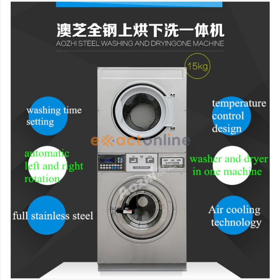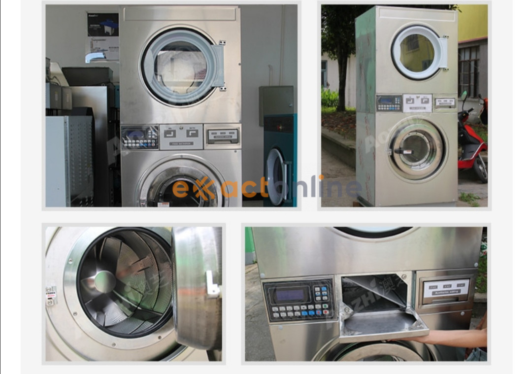Industrial automatic stack coin operated washer and dryer machines, 220/380V, 1.5kW, 15kg washing capability each, tsh 12.8 million